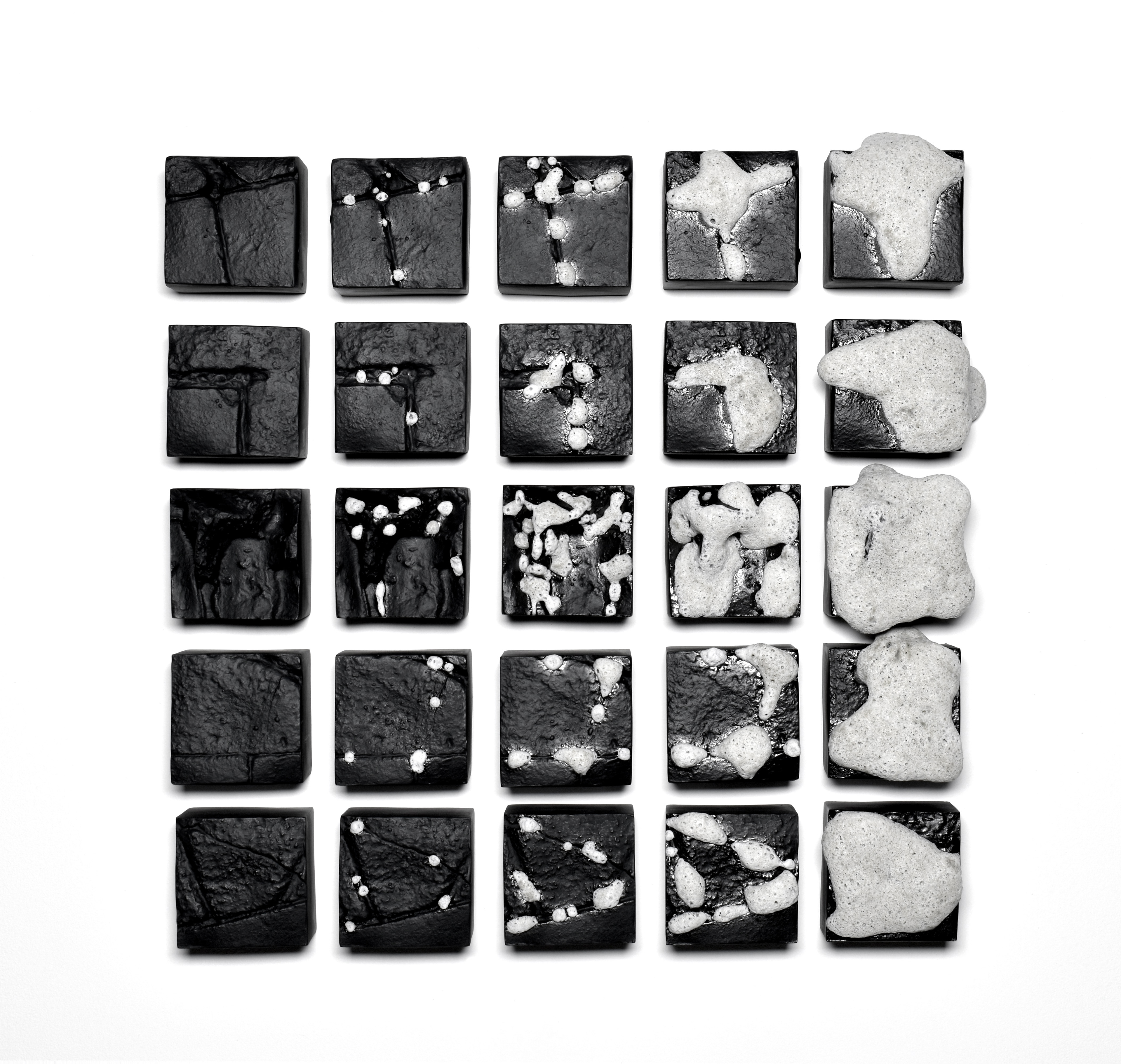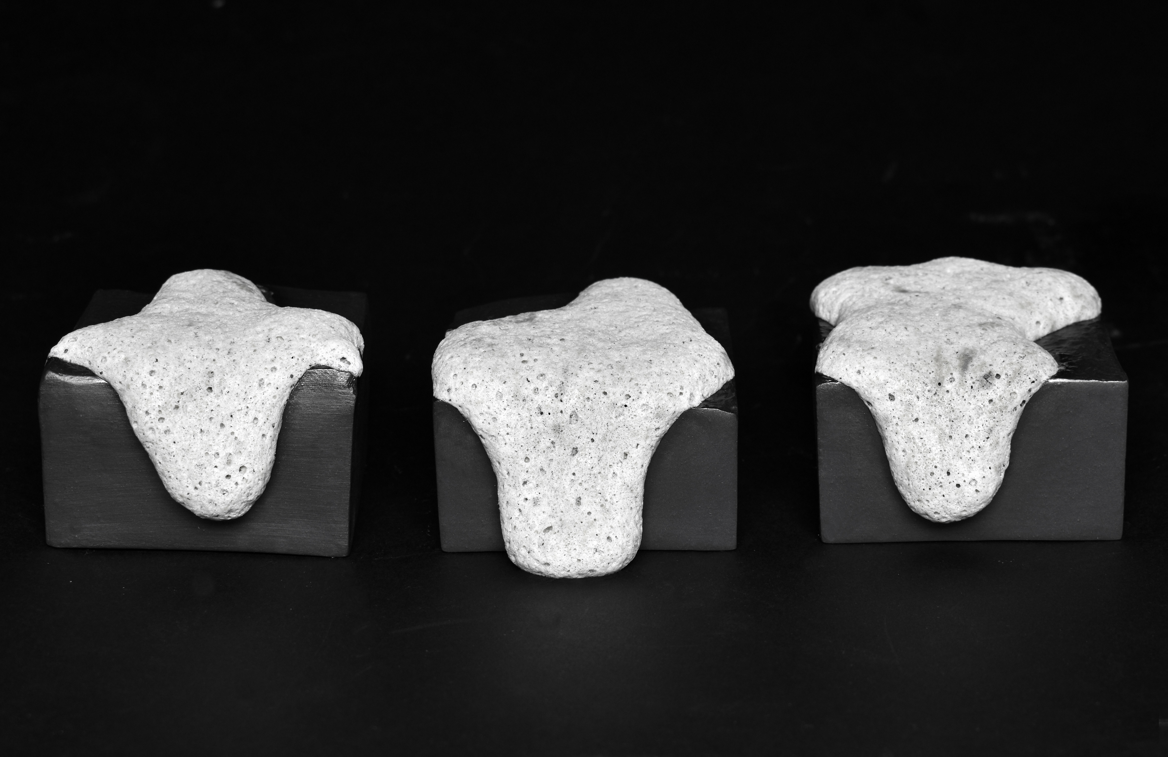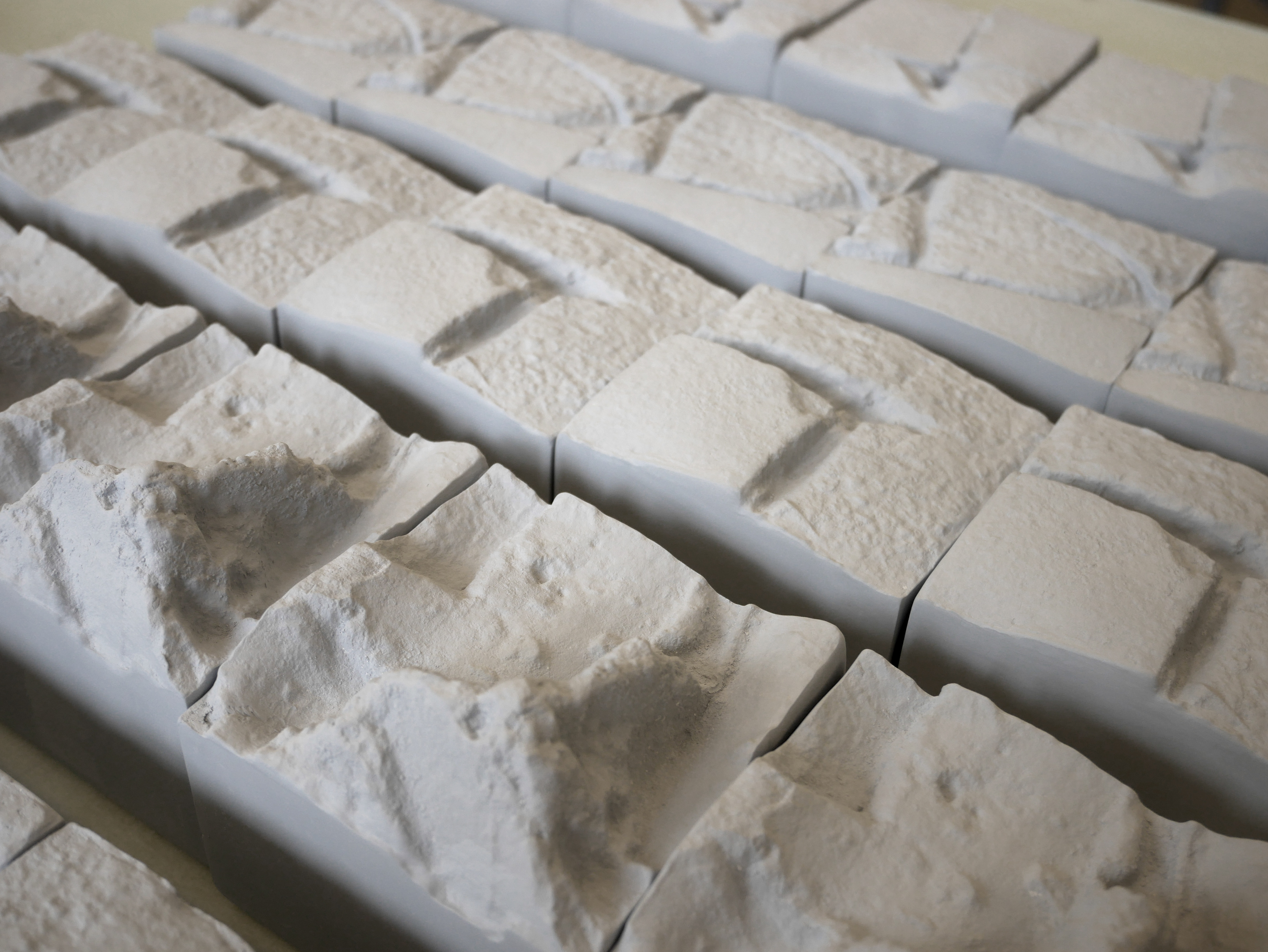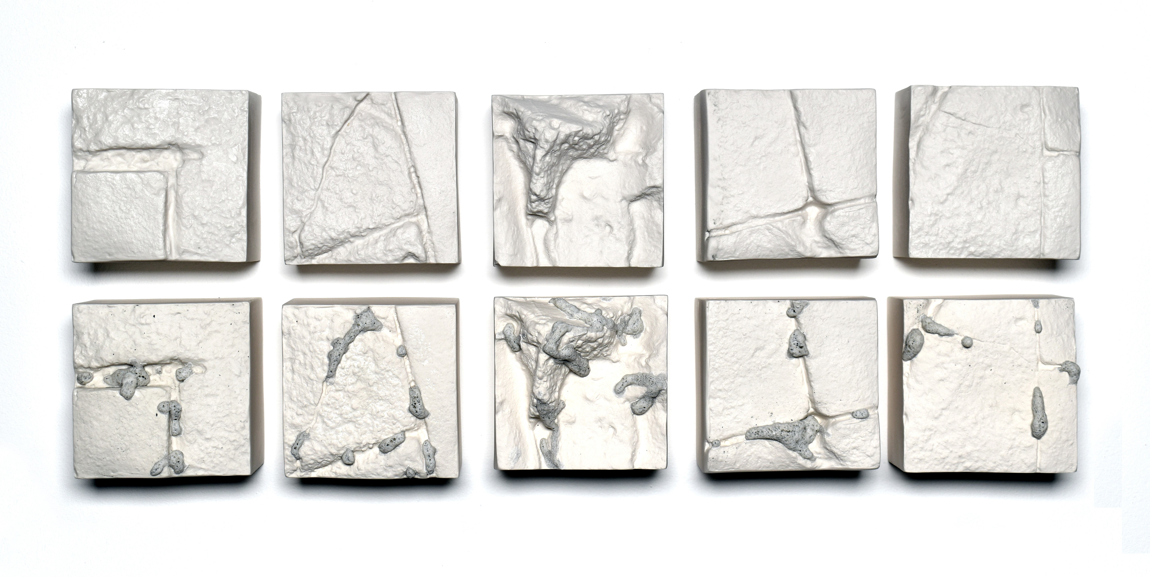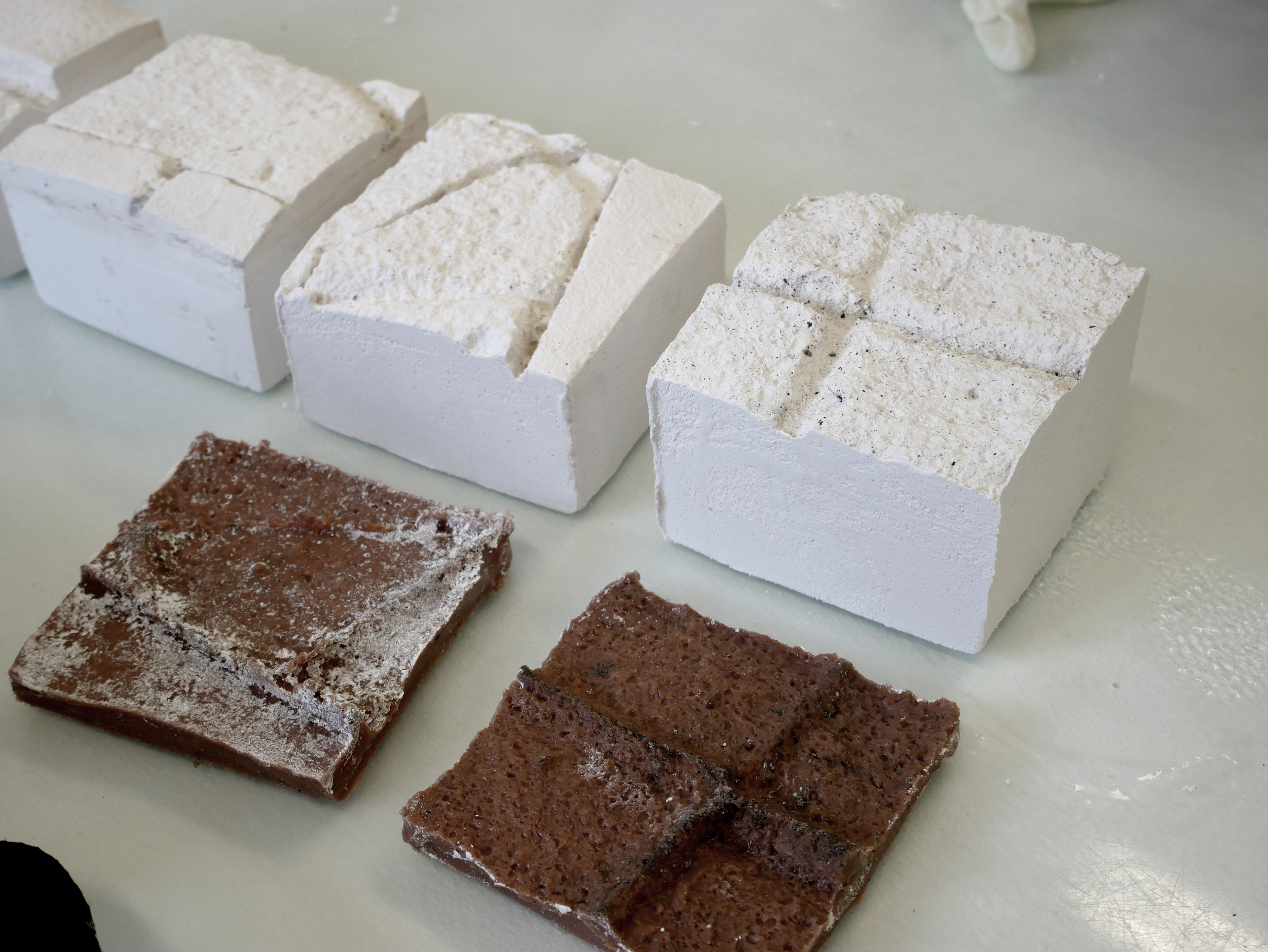 My final set of pieces I aim to exhibit will be a set of twenty-five wall-mounted objects, in rows of five. Each row will be a different cast of the ground. The far left pieces will be un-glazed and on the right will be engulfed in volcanic glaze.
