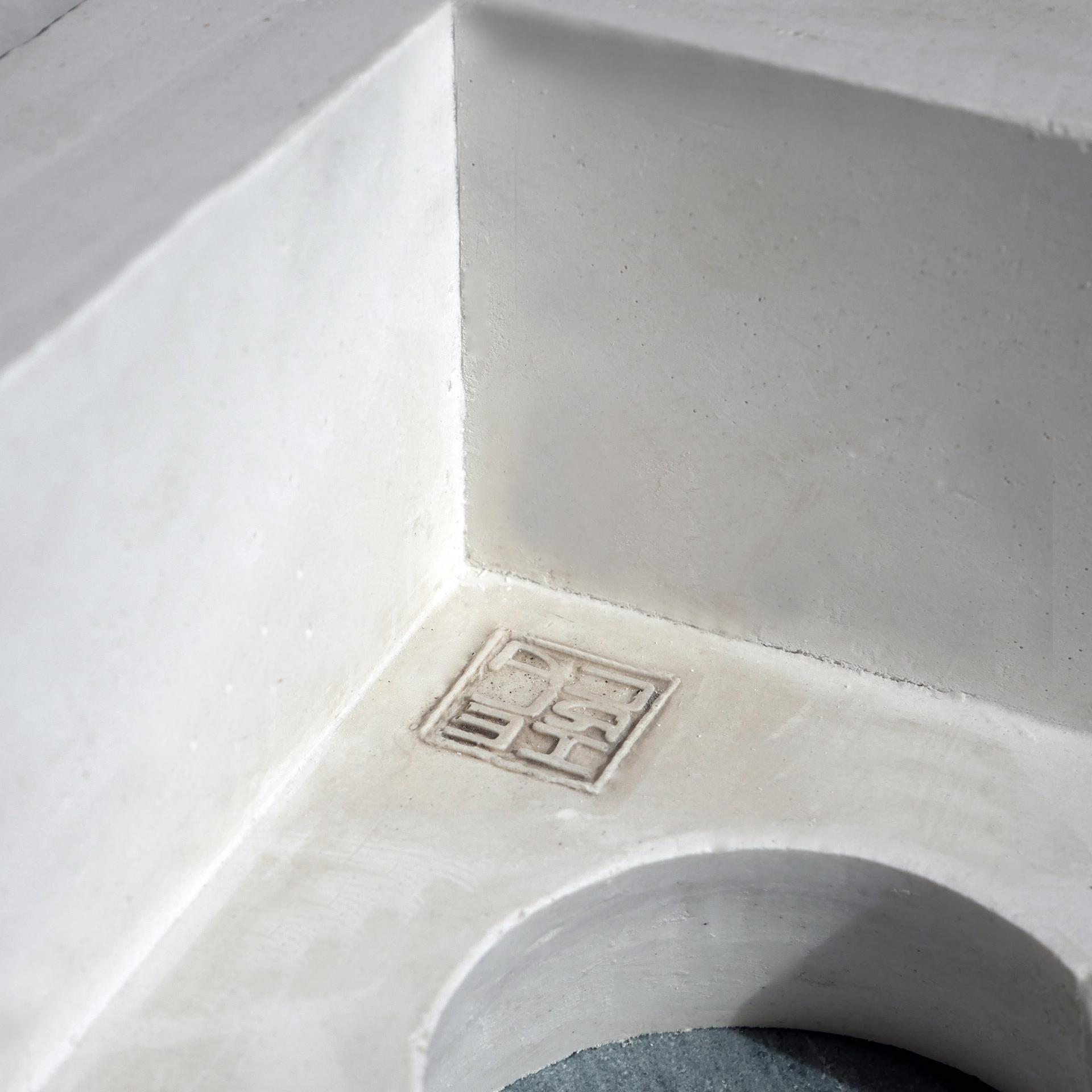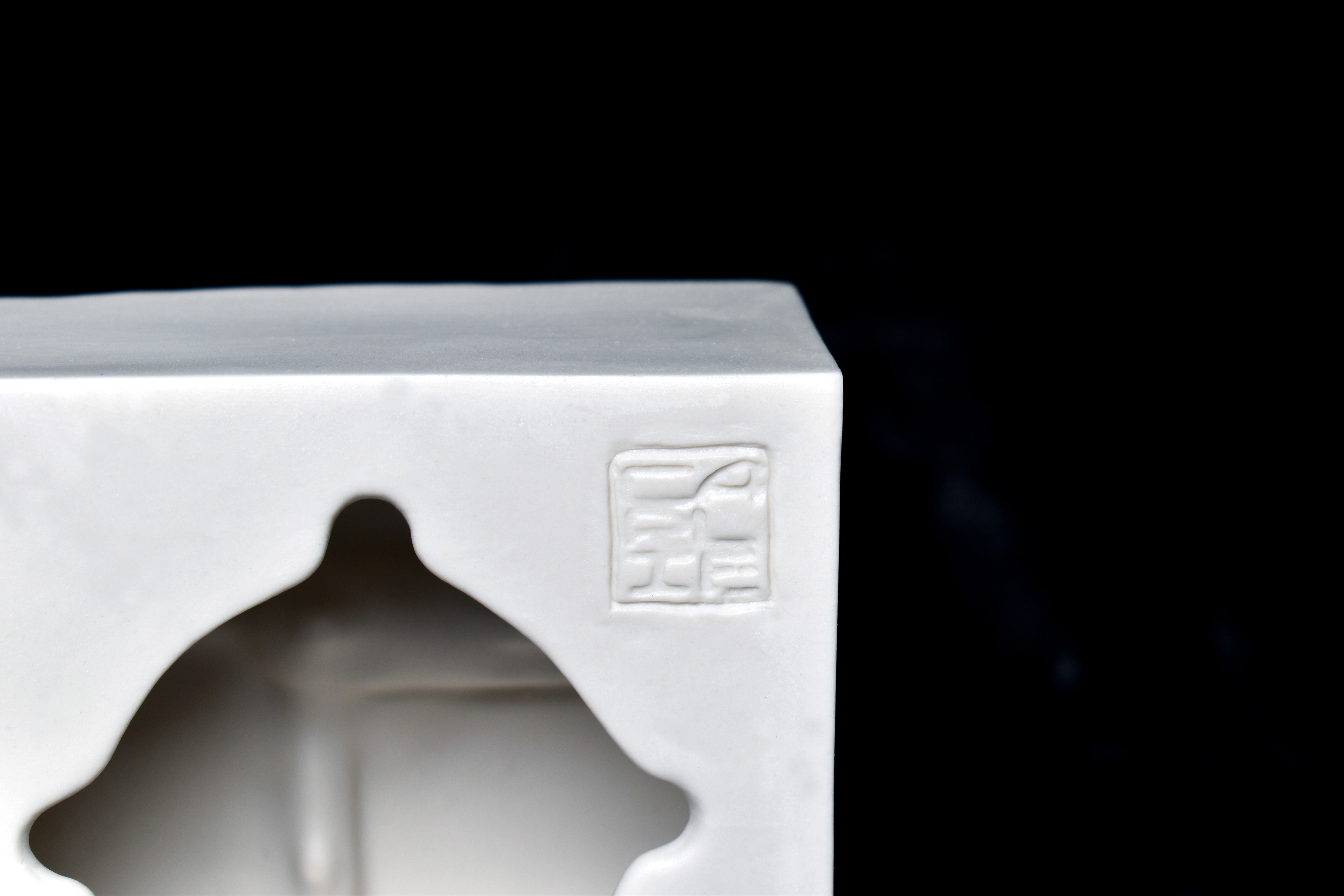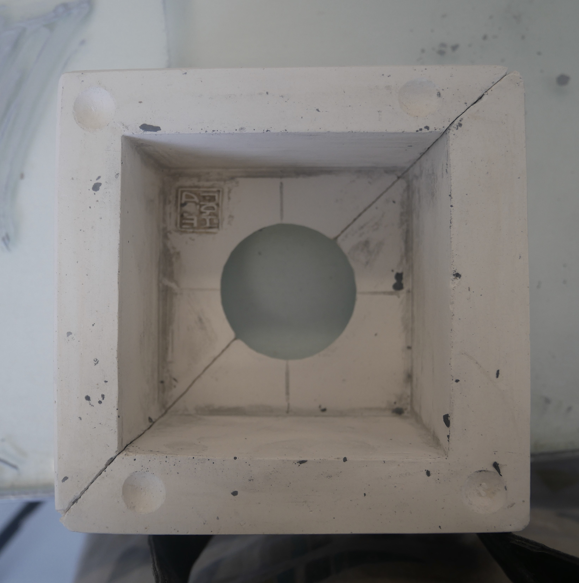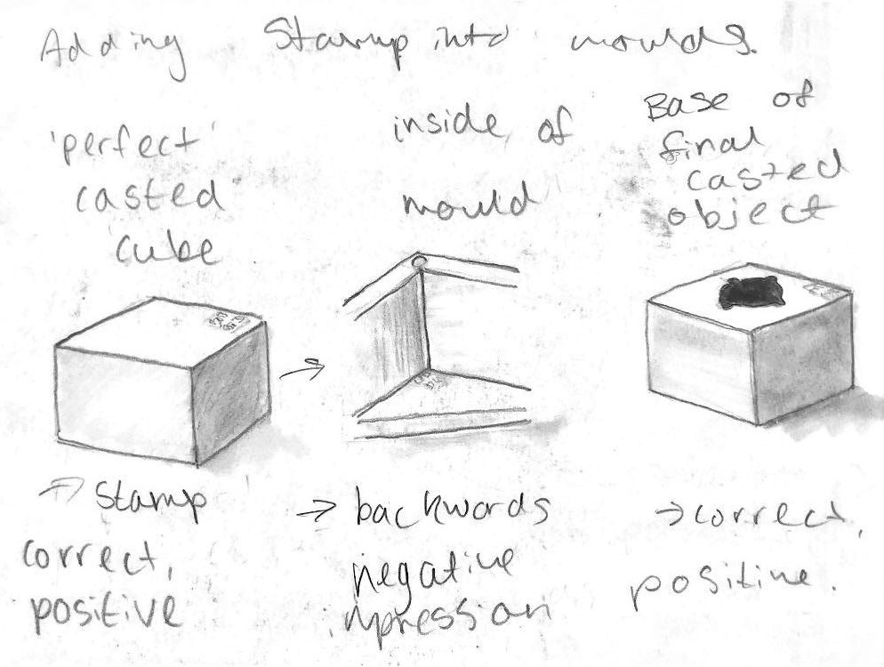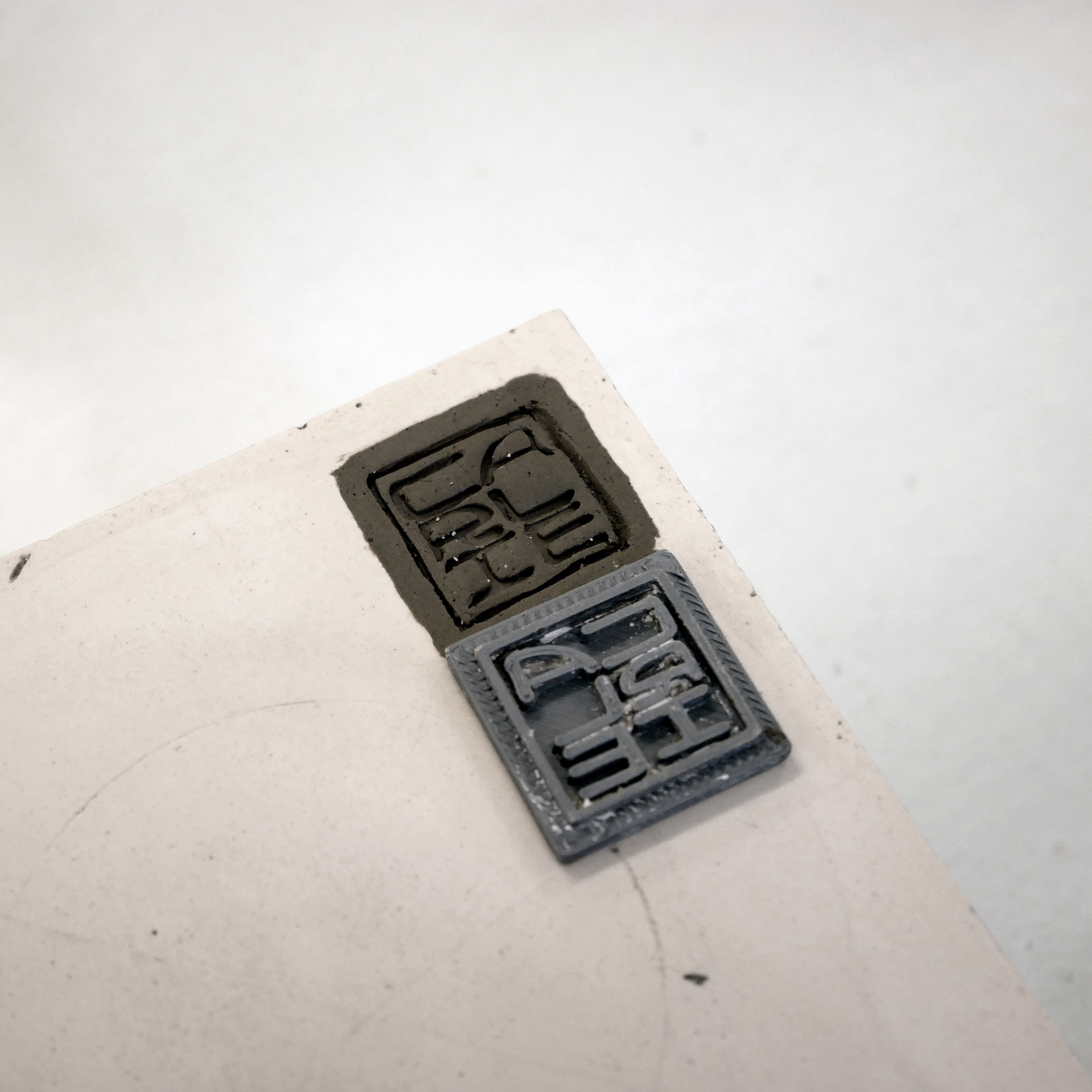 In order to include my logo into the back of the pieces I had to create a way of placing it within the moulds. I carved a small square from the base object I made and filled it with clay. Using my 3D printed stamp, I stamped the clay before casting the mould.