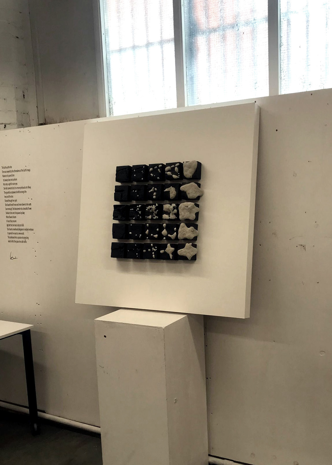 Whilst mounting the pieces and taking the images, I found the multi-directional method of wall hanging to be particularly useful. It was great to be able to rotate and move the pieces freely; to curate variations of the same installation.
