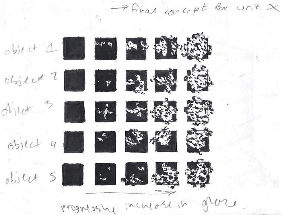 The pieces between will gradually increase in glaze application, which will create a narrative for the onlooker; reading from left to right to visualise the time and growth of the plants growing between the cracks.