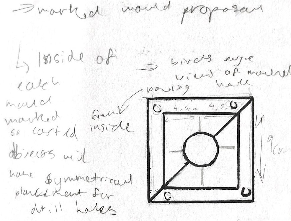 In order to refine my process, I am going to create a perfect set of moulds to slip cast five pieces at once; resulting in a more time-efficient process. At the back of each piece, I will create a method to hang each piece from a central pour hold with four notches, enabling the objects to be hung from any four directions.