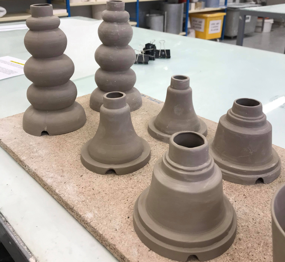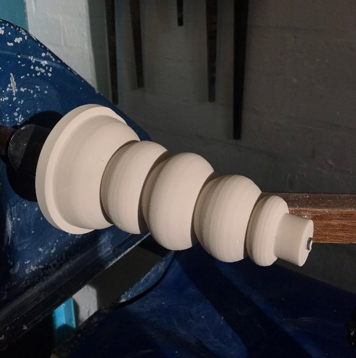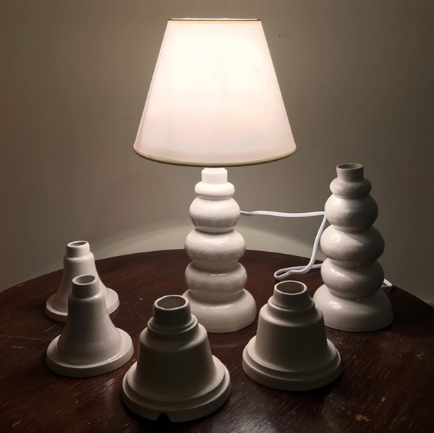 I chose to contemporize the process by turning on the plaster lathe, and slip casting the lamp bases.